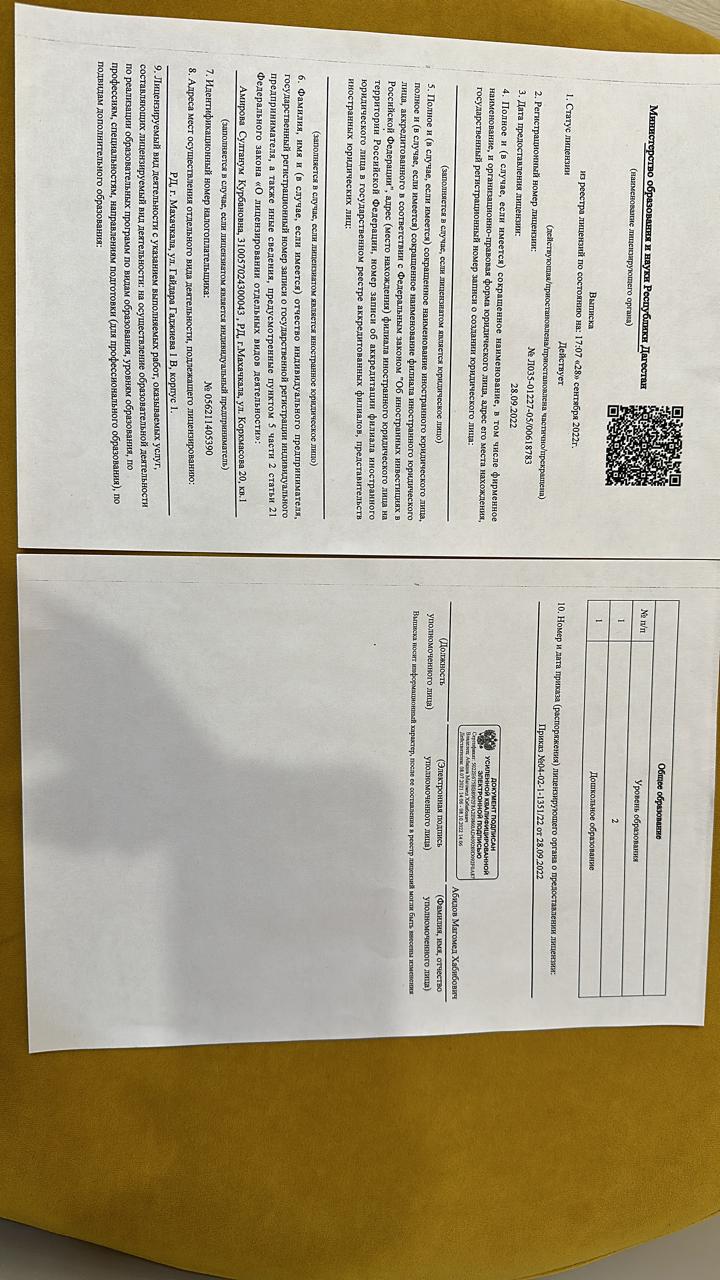 Лицензия на осуществление образовательной деятельности (выписка из реестра лицензий на осуществление образовательной деятельности)